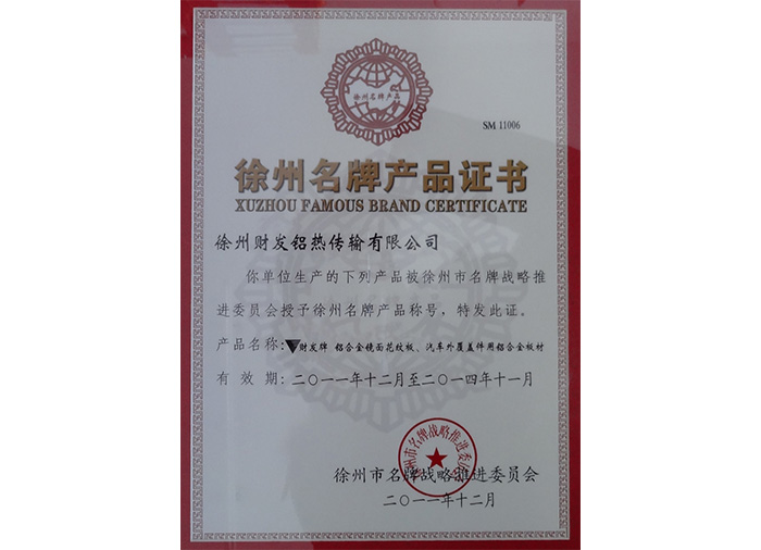 • Xuzhou Brand Product Certificate