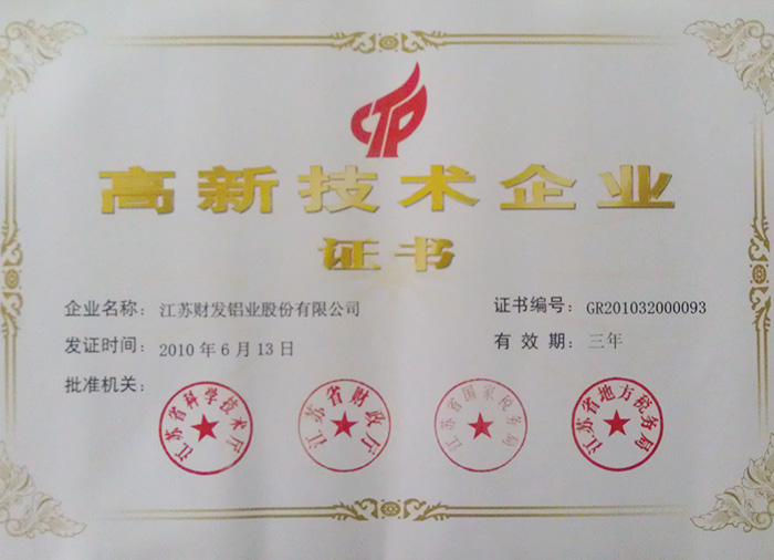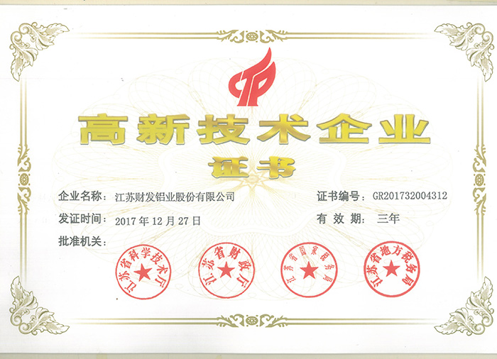 • Certificate of High-tech Enterprise